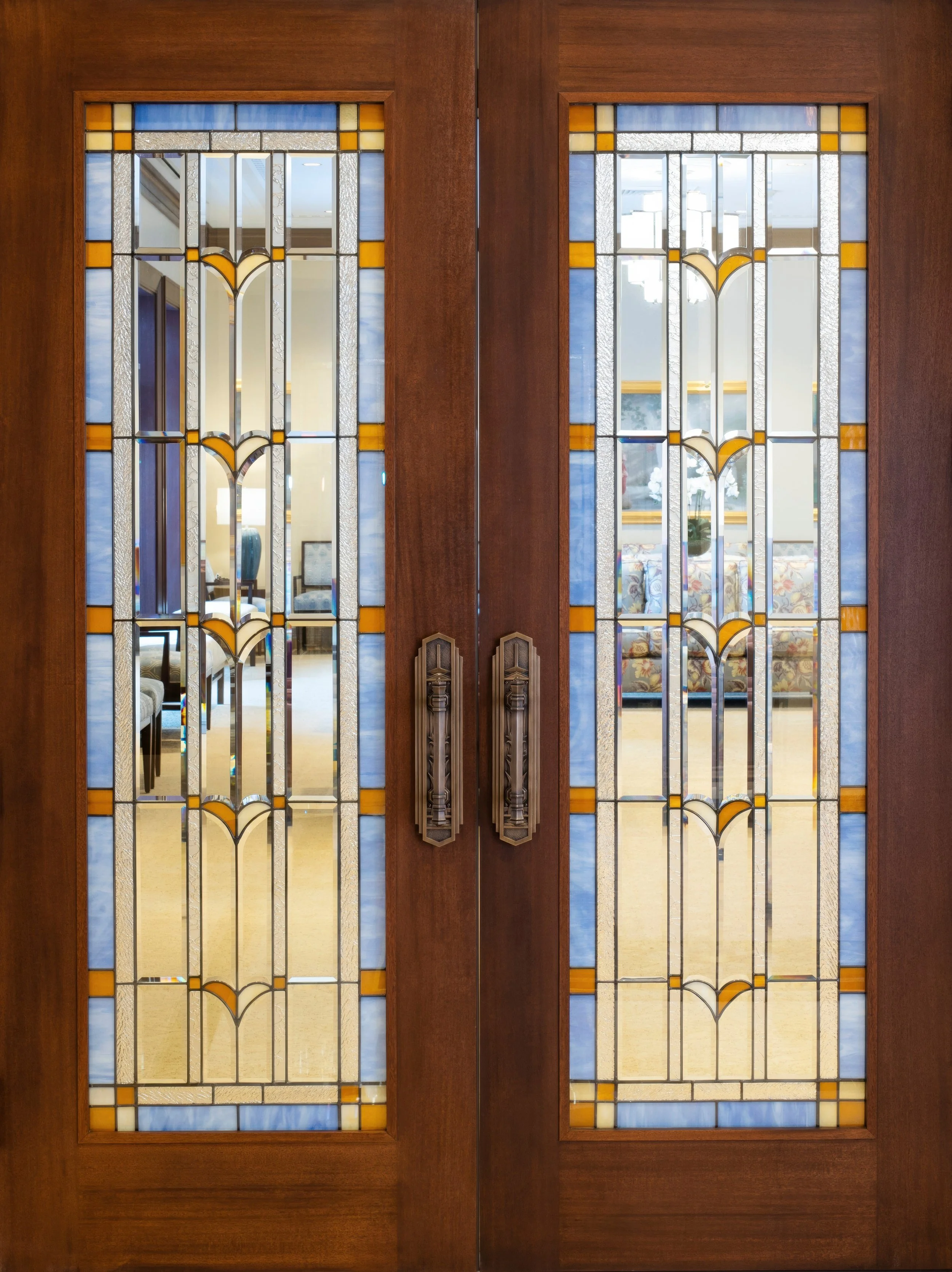 The millwork, doors and standard wood for the temple is a Sapele African Mahogany finished by Granite Mill. Some doors have interior art glass incorporated into their design. The style of the millwork is Art Deco.